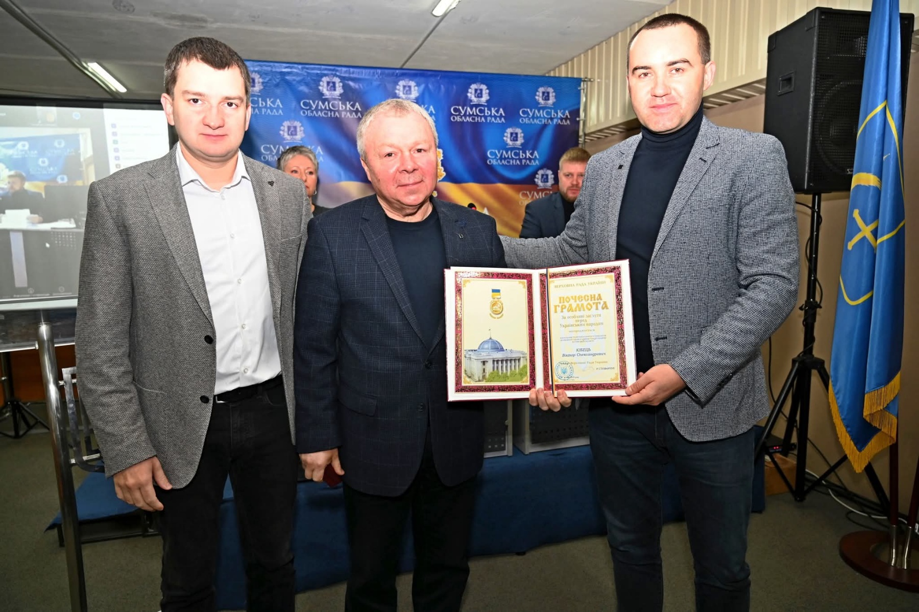 За сумлінну працю, високий професіоналізм і вагомий особистий внесок у розвиток правової держави Почесною грамотою Верховної Ради України нагороджено Віктора Олександровича Кібця - начальника Територіального управління Державної судової адміністрації України в Сумській області.