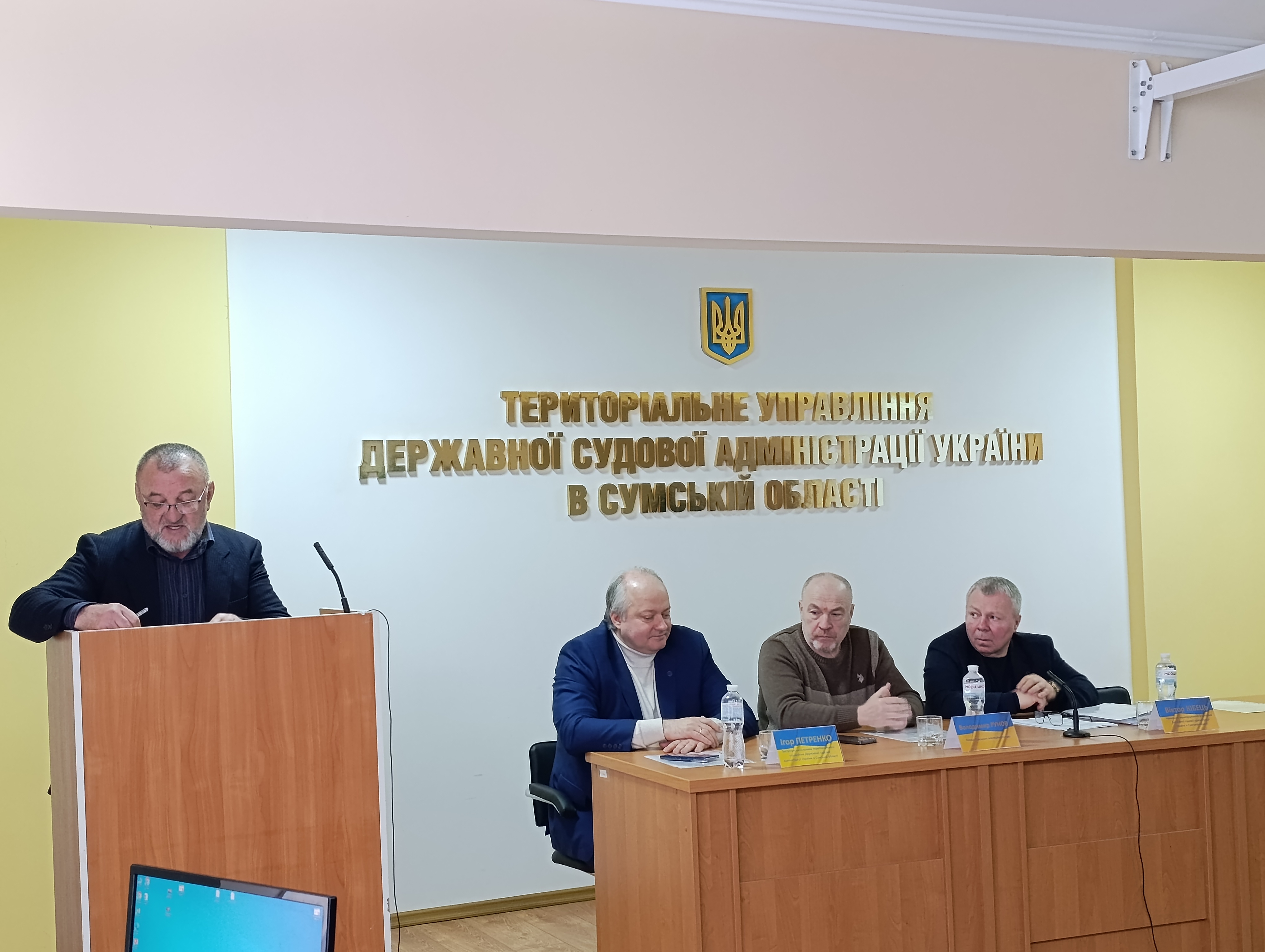 Начальник територіального управління Віктор КІБЕЦЬ презентував доповідь на тему “Результати роботи ТУ ДСА України в Сумській області по організаційному забезпеченню діяльності загальних місцевих судів у 2025 році та перспективи фінансового забезпечення у 2026 році».
