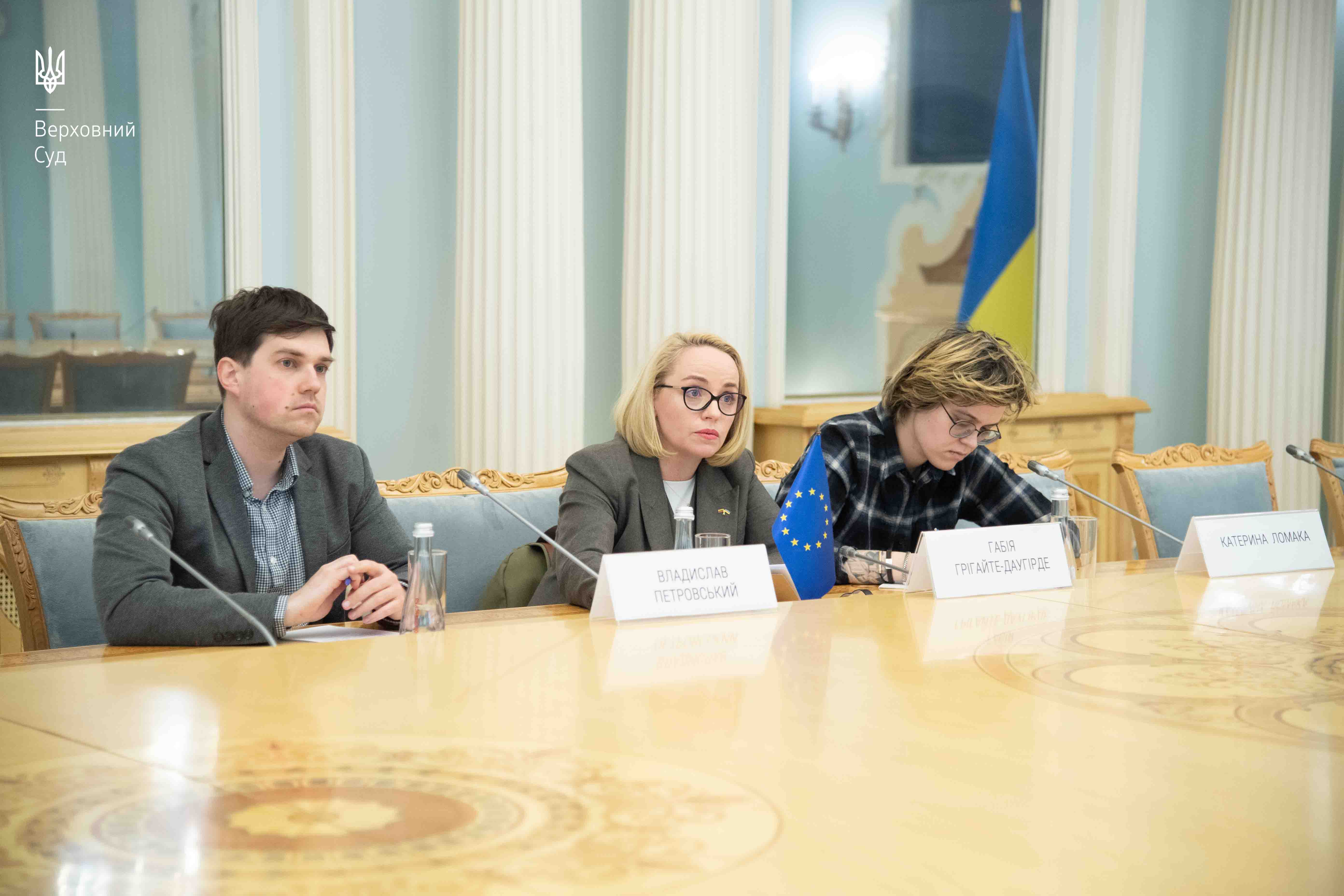У зустрічі також узяли участь суддя Великої Палати Верховного Суду Віталій Уркевич, т. в. о. керівника Апарату ВС Расім Бабанли та експерт проєкту Ukraine2EU Владислав Петровський.